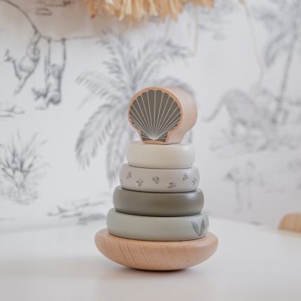 Label Label Drveni balansirajući toranj s obručima – Olive Green