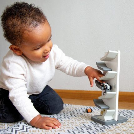 Uz ovu zanimljivu drvenu stazu mališani mogu pustiti autiće da jure niz rampe u zig-zag pokretima – iznova i iznova! Staza pomaže razvoju koordinacije pokreta, logičkog razmišljanja i strpljenja, dok istovremeno pruža sate dinamične igre. Ilustracija lava i moderno usklađene boje čine je ne samo edukativnom, već i estetski privlačnom dekoracijom u prostoru.