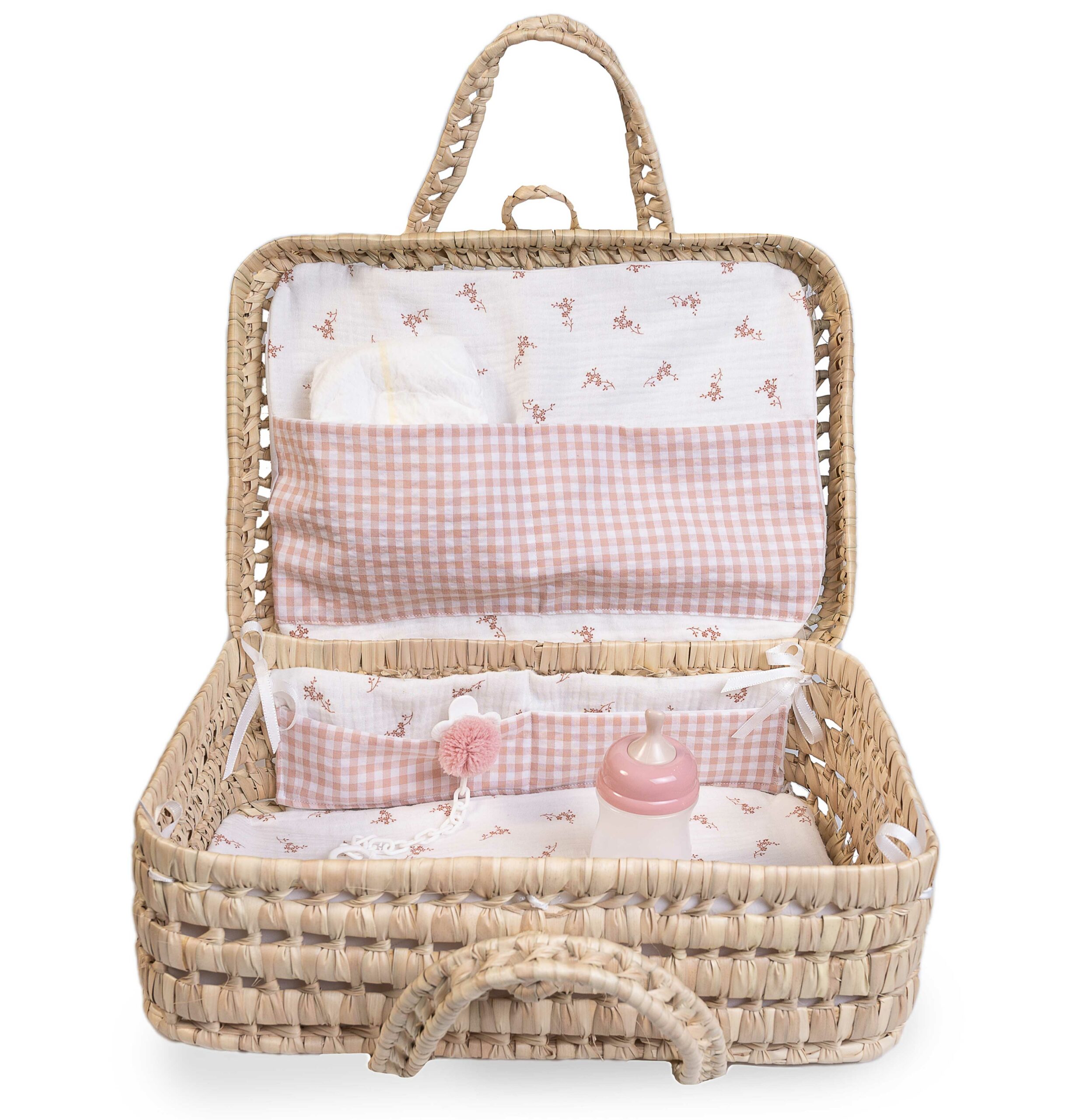 Ovaj predivni Antonio Juan kofer od palme, ukrašen cvjetnim i vichy uzorkom, ne samo da je estetski dopadljiv, već je i savršen pratilac za mališane i njihove lutke.