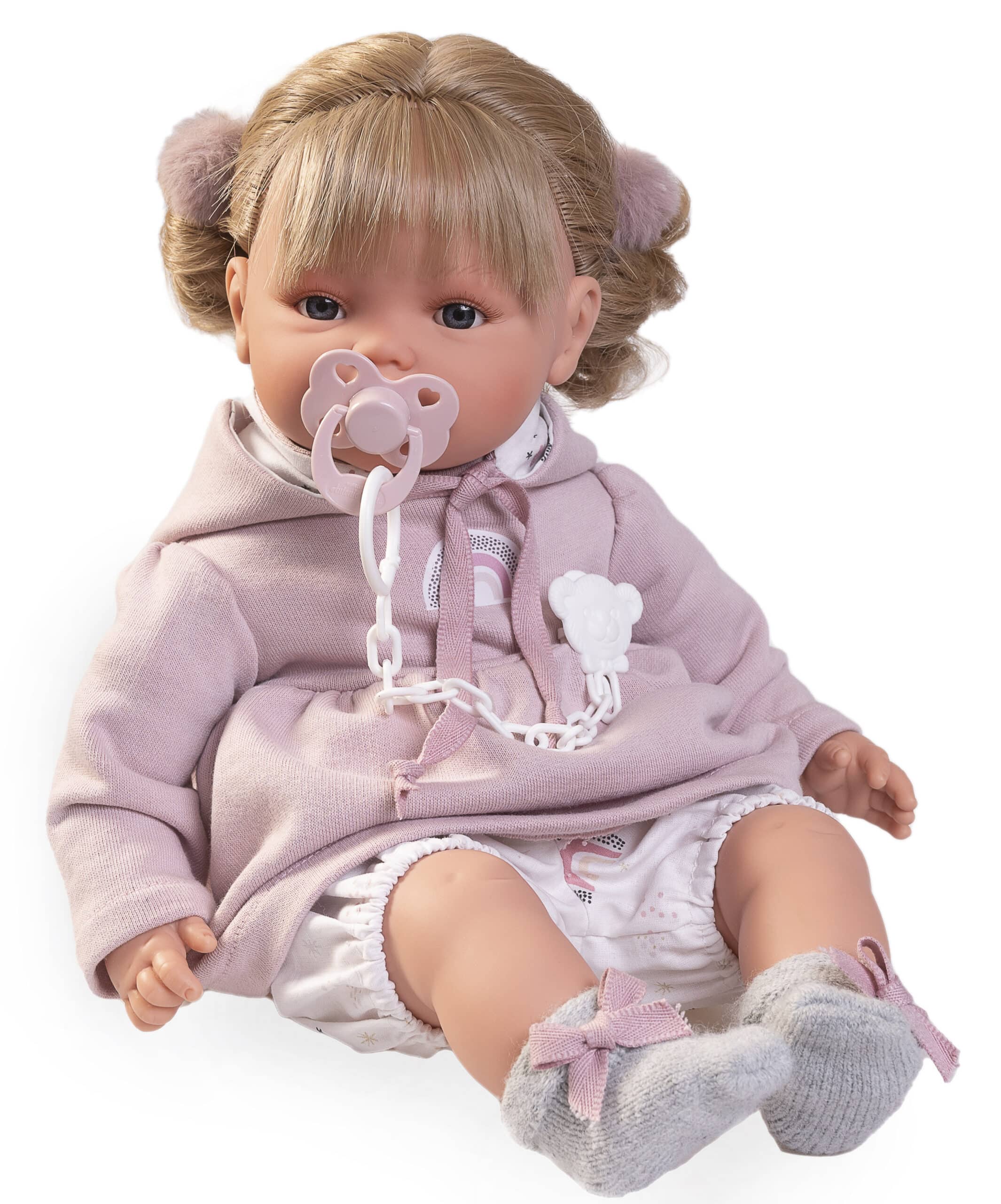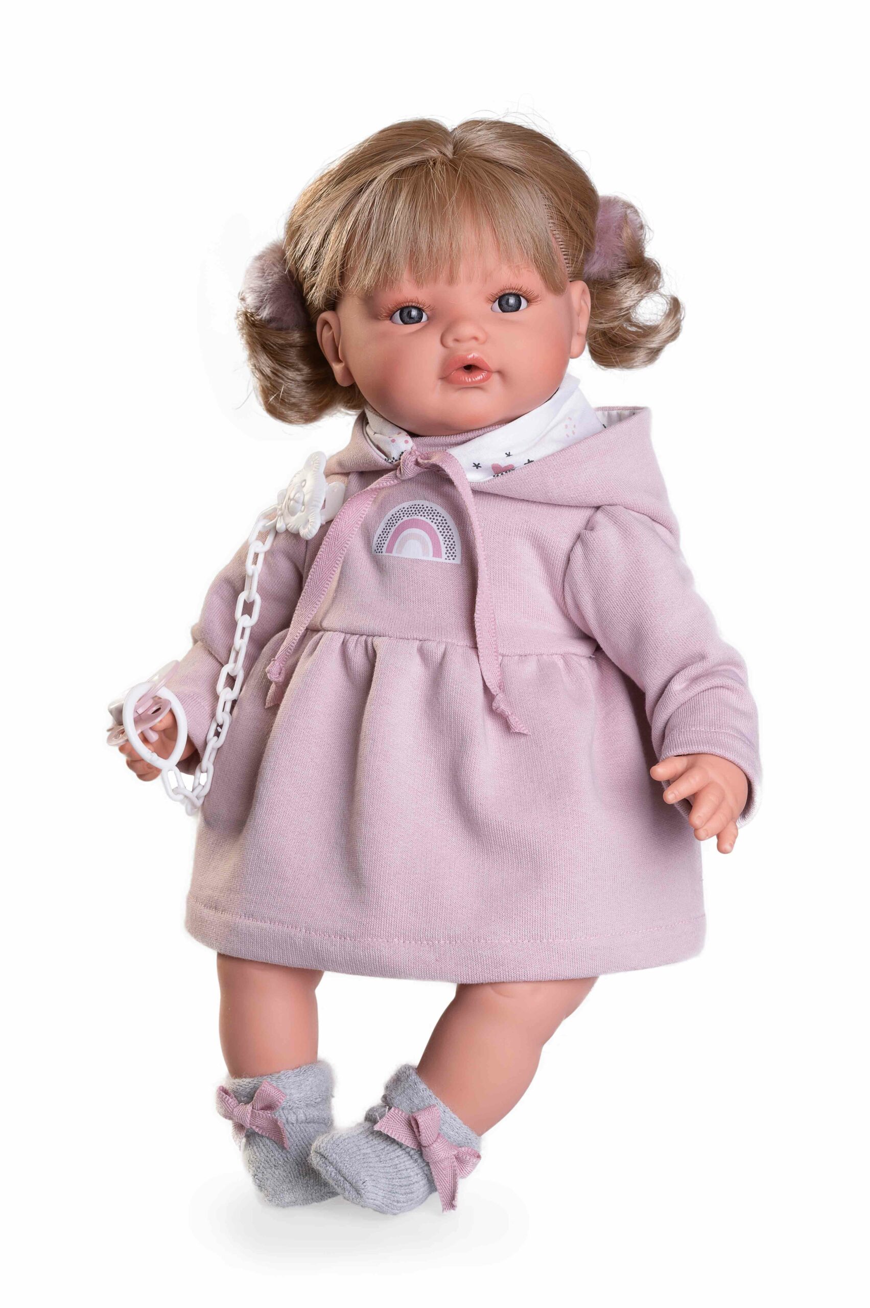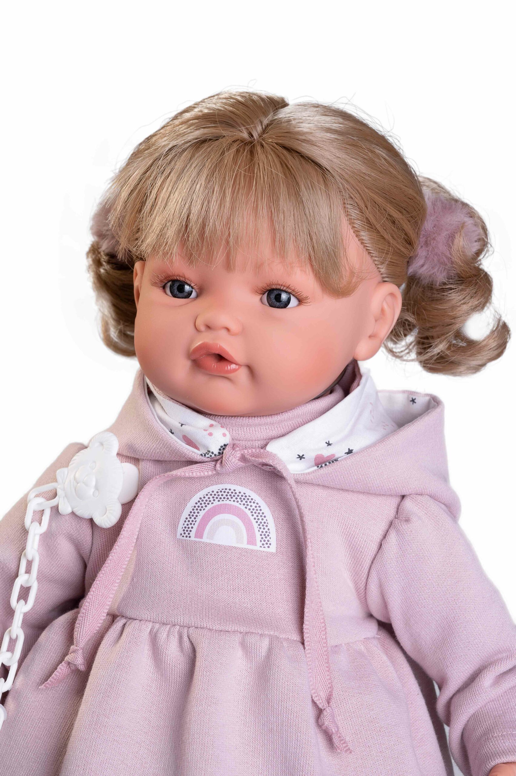 Antonio Juan lutka BENI zaista voli izgledati lijepo i ima sve dodatke. Njena roza haljina ima lijepi uzorak duga. S čarapama s mašnicom i pompomima na repićima, ne nedostaje joj nijedan detalj za šetnju.