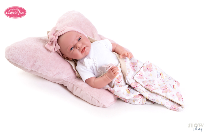 Antonio Juan lutka Lea novorođenče sa jastukom i dekicom 42cm ima prekrasnu dekicu kojom je možete prekriti dok se odmara ili dok se igra mekanim jastučićem u obliku leptirovih krila.