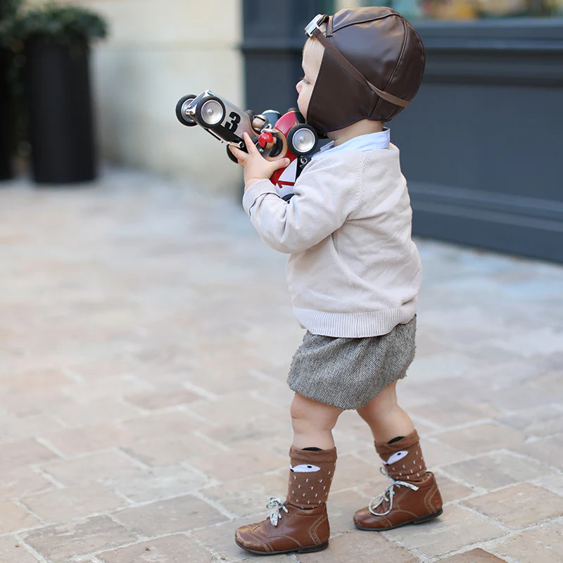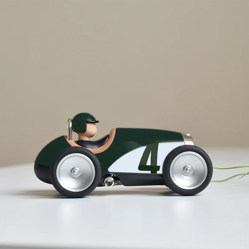 Dizajn Racing autića prepoznatljivo je vintage — sa formom koja podsjeća na slavne “Silver Arrow” i Maserati bolide iz zlatne ere automobilizma. Zahvaljujući svojoj izdržljivoj konstrukciji, savršeno poliranoj površini i detaljima kao što su veliki gumeni točkovi i nisko profilisana karoserija, Racing autić jednako dobro služi kao igračka za svakodnevne avanture ili kao dekoracija u uredu, dječijoj sobi ili kolekcionarskoj vitrini.