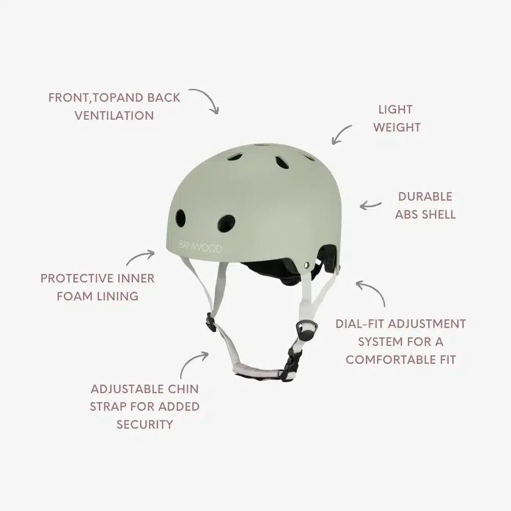 Banwood ECO Kaciga je sigurna, lagana i udobna dječija kaciga od recikliranih materijala, dizajnirana za vožnju romobila (trotineta), balans bicikla, bicikla, kao i za skejt ili role.