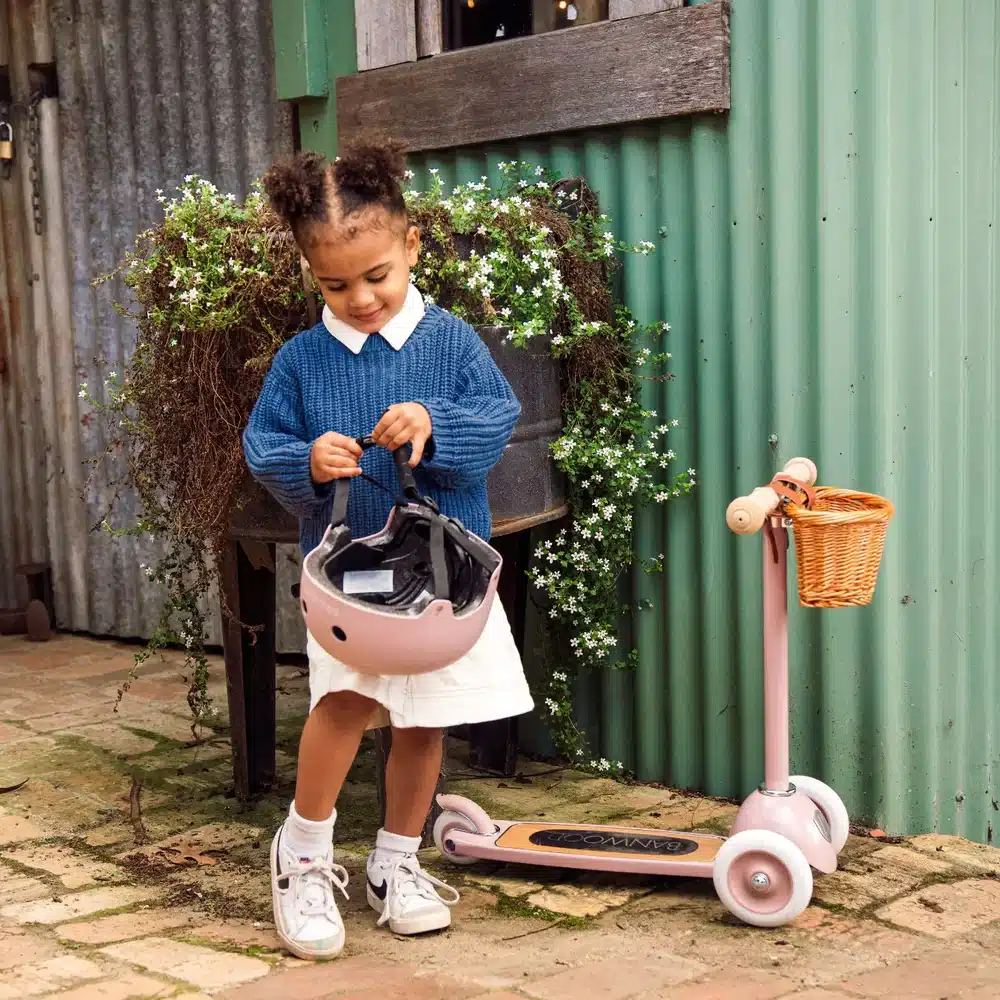 Banwood Romobil Trotinet – Dusty Pink + Pletena korpica