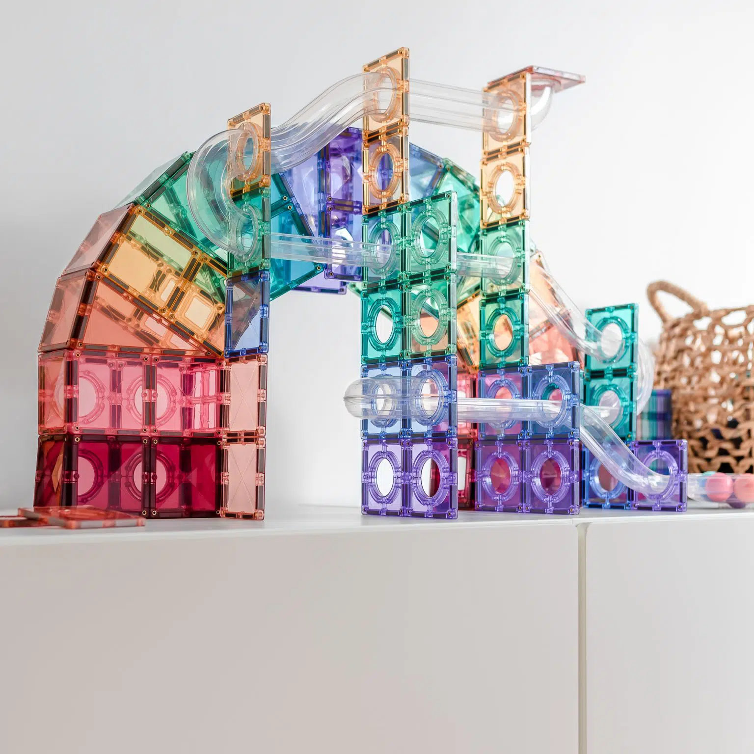 Connetix Tiles Ball Run set 106 kom – Pastel je savršen dodatak svim standardnim setovima magnetnih pločica i prekrasan način da istražite gravitaciju i kretanje.
