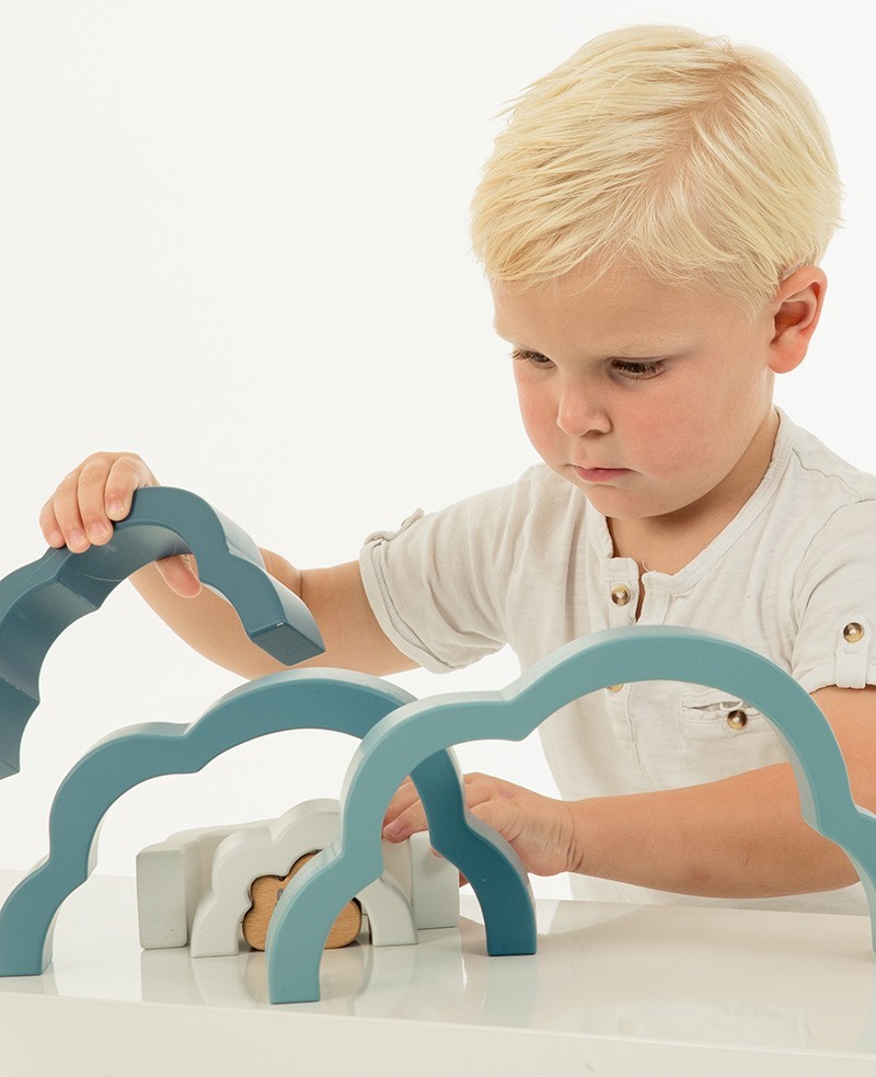 Ovaj set od 7 lukova u obliku oblaka u nježnim bojama nudi beskrajne mogućnosti za slaganje, izgradnju i pronalaženje prave ravnoteže. Zahvaljujući različitim veličinama lukova, svaki put stvarate različite ravne ili 3-dimenzionalne figure. Vaše dijete može u potpunosti razviti svoju kreativnost i svaku ideju staviti na probu.