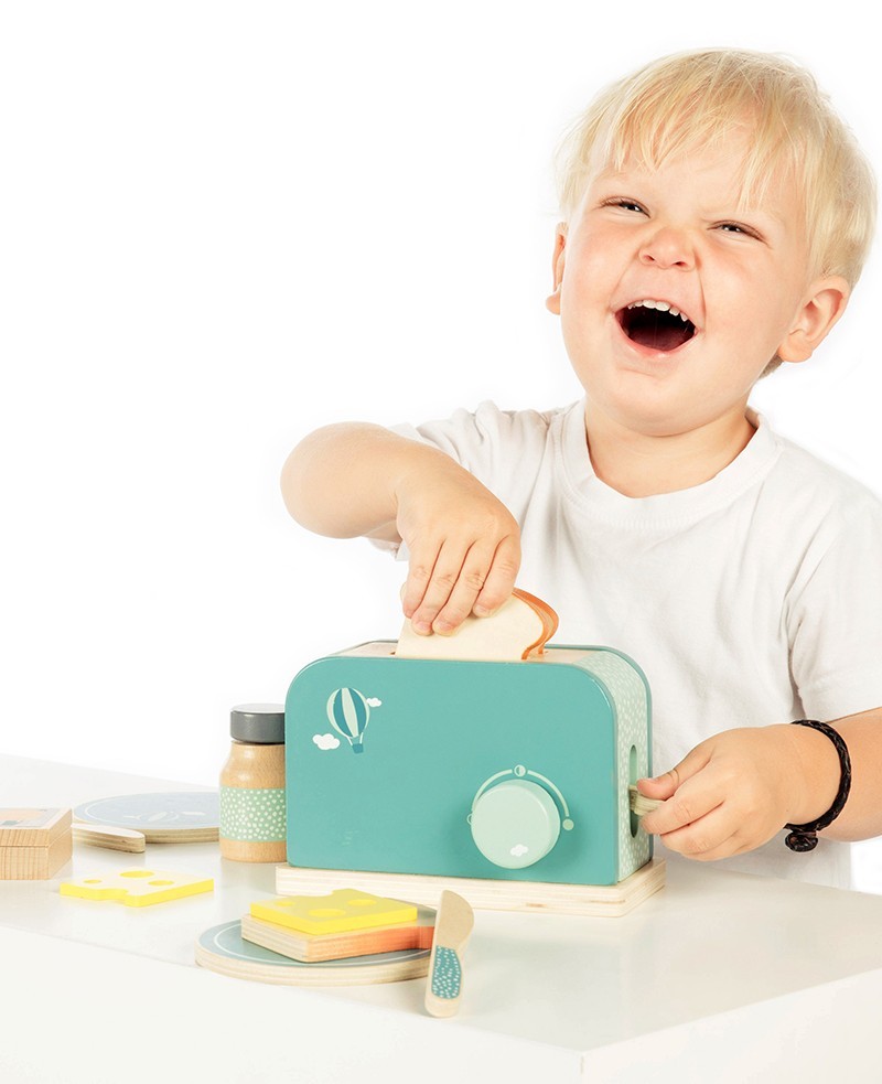 Ah… ti ugodni trenuci doručka sa porodicom! Uz ovaj divni toster belgijskog brenda Label Label, vaš mališan će pripremiti najbolji tost ikada i poslužiti ga s dodacima po vašem izboru. Toster je napravljen od visokokvalitetnog drveta sa FSC certifikatom i opremljen je prekrasnim bojama i šarama korištenjem boja na bazi vode prilagođene djeci.