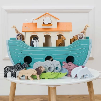 Igračka je izrađena od trajnog i održivog drveta i ne sadrži plastiku. Vrlo sigurna igračka, ukrašena netoksičnim bojama i testirana prema najvišim sigurnosnim standardima.