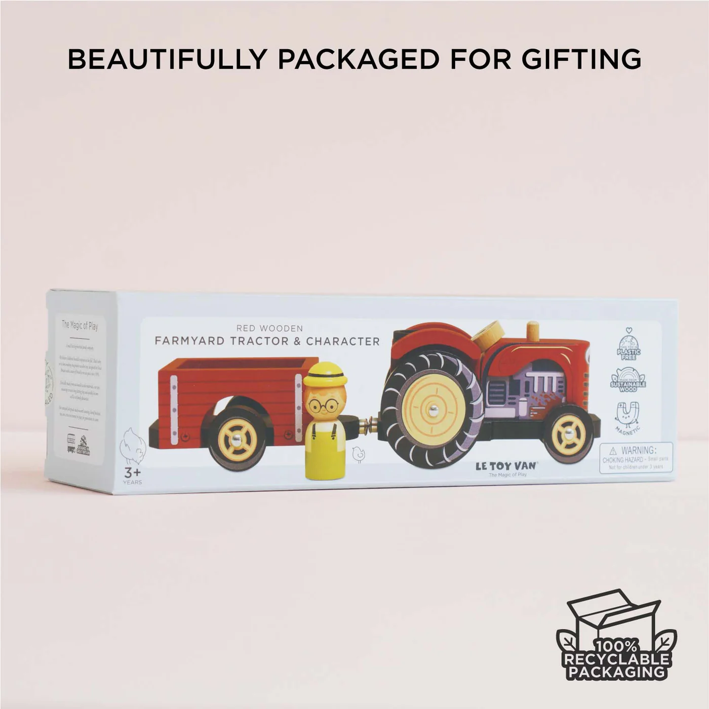 Le Toy Van Crveni drveni traktor – Bertie donosi djeci toplinu seoskog života i jednostavne, bezbrižne igre kakvu pamtimo iz djetinjstva. Ovaj klasični drveni traktor sa prikolicom savršen je za male farmere koji kroz igru stvaraju vlastite priče o životinjama, radu na farmi i svakodnevnim avanturama. Čvrst, stabilan i pažljivo izrađen, ovaj model postaje igračka koja traje godinama i ostaje dio uspomena.
