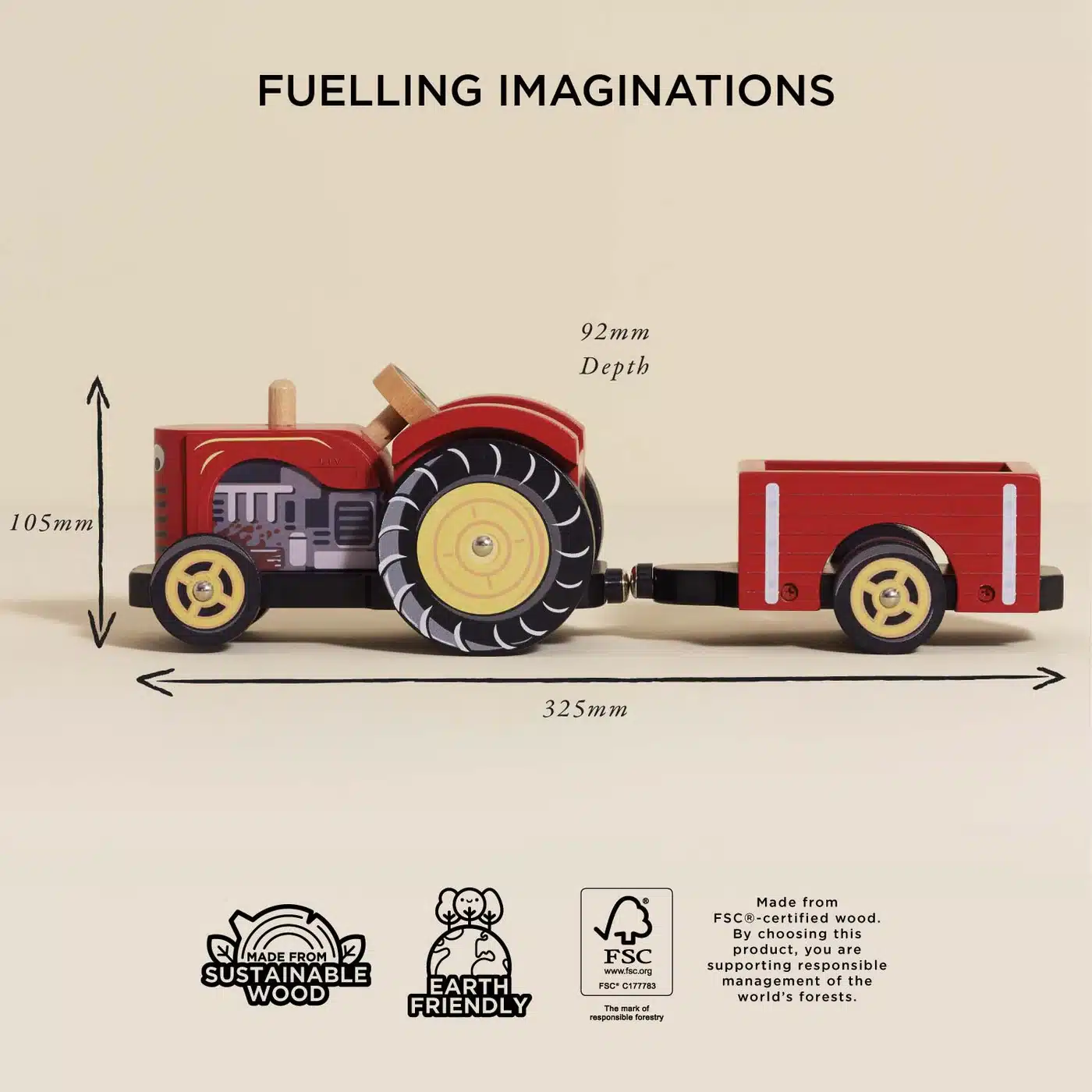 Le Toy Van Crveni drveni traktor sa prikolicom – Bertie