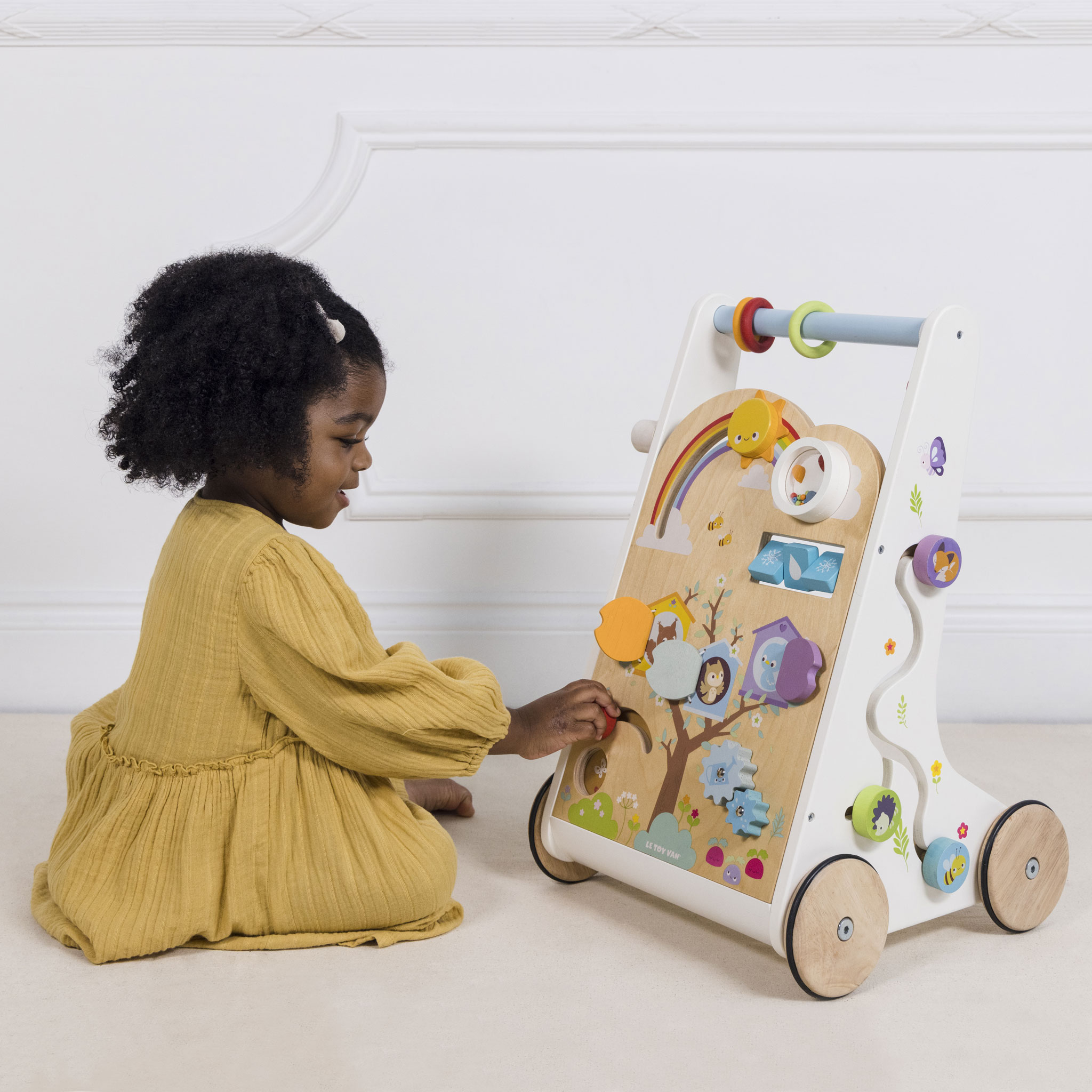 Prekrasna Le Toy Van drvena aktivnosna guralica sa Montessori tablom za prve korake, idealan je pratilac u razvoju vašeg djeteta.