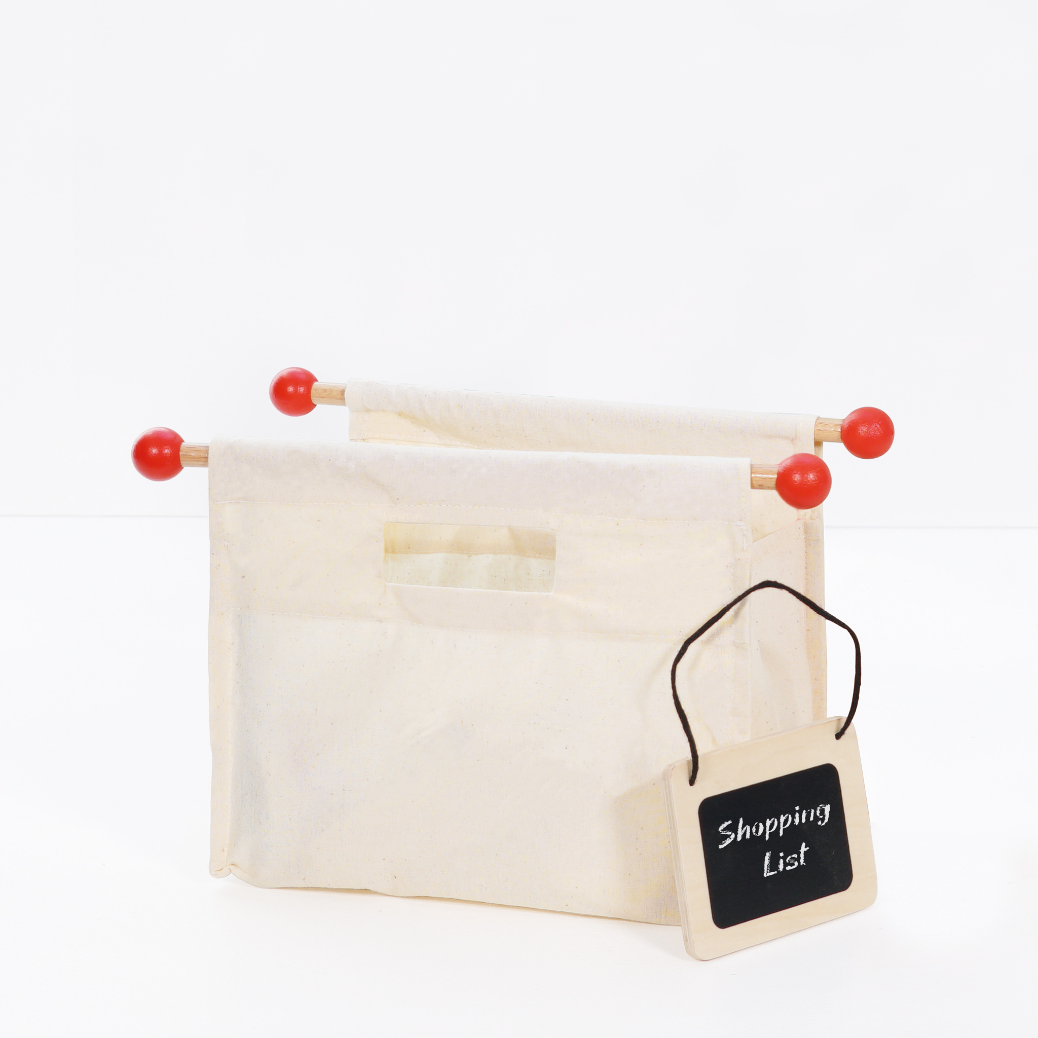 Ova preslatka drvena kolica upravo su ono što im treba kada krenu u nabavku. Drvena kolica imaju dva drvena pretinca, a u podnožju se nalazi dodatno mjesto za odlaganje. Također, tu je i praktična platnena vrećica koju mogu smjestiti između pretinaca, te ju lako izvaditi nakon što završe sa shoppingom. Uz kolica dolazi i mala ploča na koju mogu napisati listu namirnica za kupovinu, kako male glavice ne bi zaboravile kupiti sve potrebne namirinice.