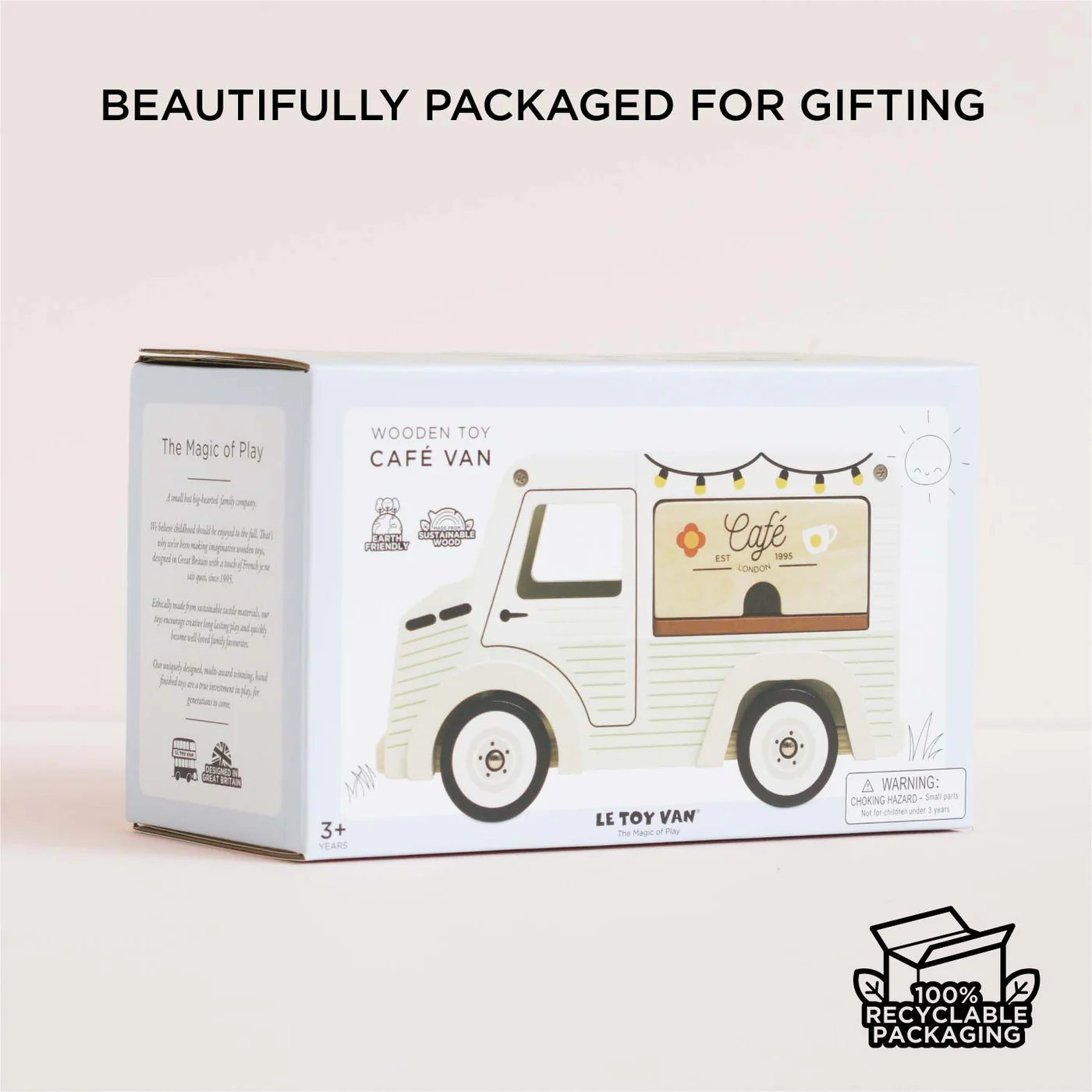 Le Toy Van Kombi – Mobilni café bar je ručno izrađeno drveno vozilo od FSC® certificiranog drveta koji potiče kreativnu igru uloga, maštu i zabavu kroz svijet malih barista.