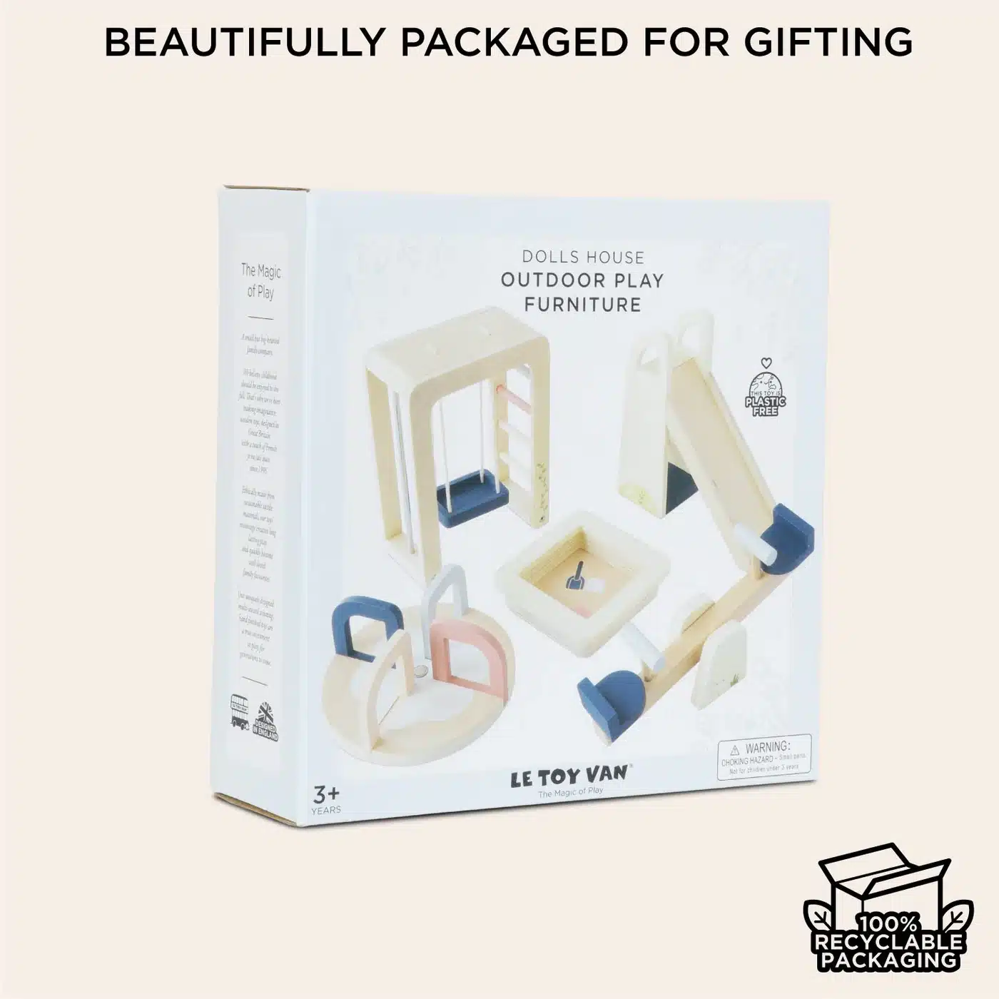 Le Toy Van dječiji park za kućice za lutke donosi tobogan, ljuljačku i igru uloga koja razvija maštu, kreativnost i socijalne vještine djece.