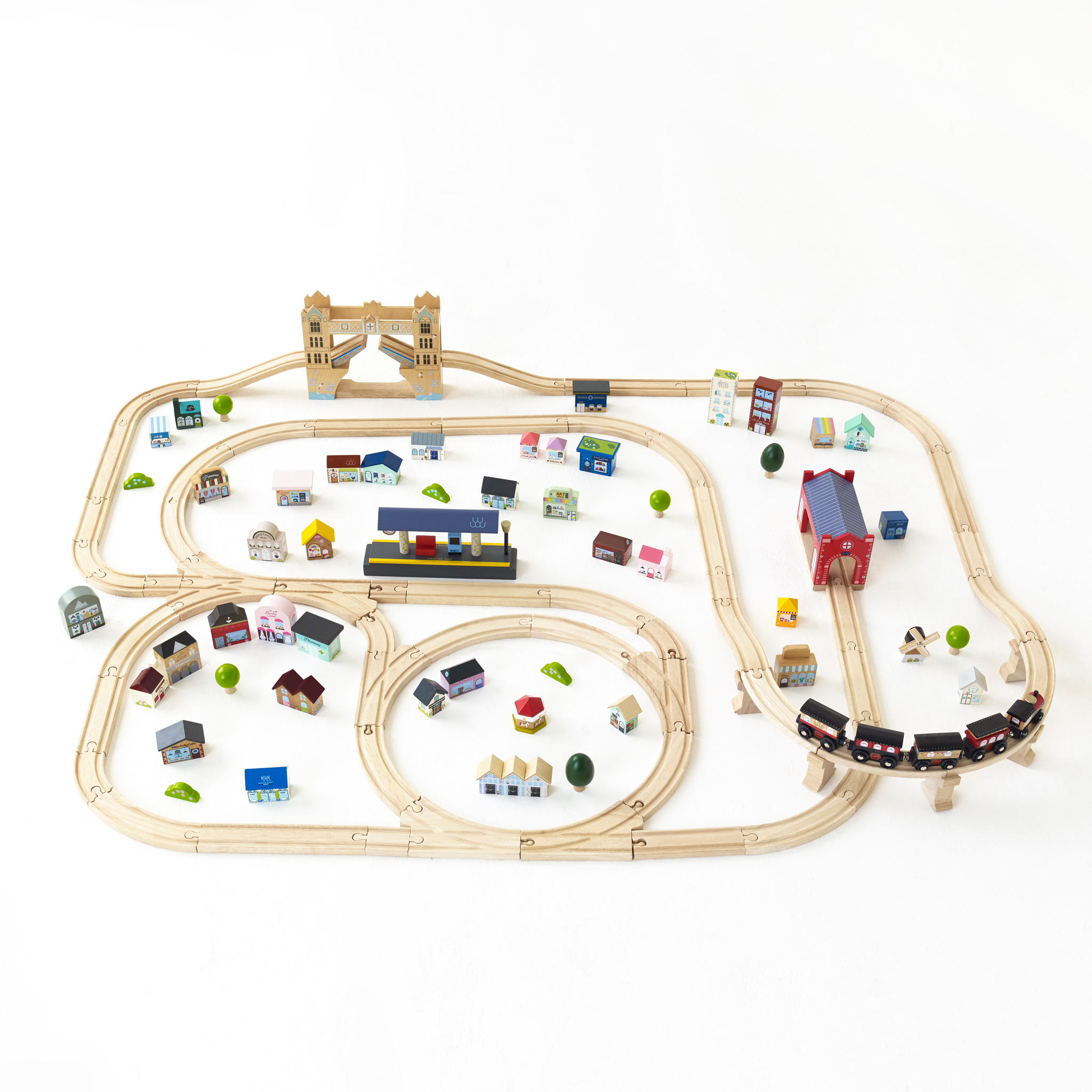 Komplet se sastoji od magnetnih povezivih vagona, željezničkih pruga, željezničkih perona, raznih zgrada i najpoznatijeg svjetskog mosta “Tower Bridge”. Vagoni su kompatibilni s popularnim željezničkim prugama. Komplet je izrađen od održivog drveta.