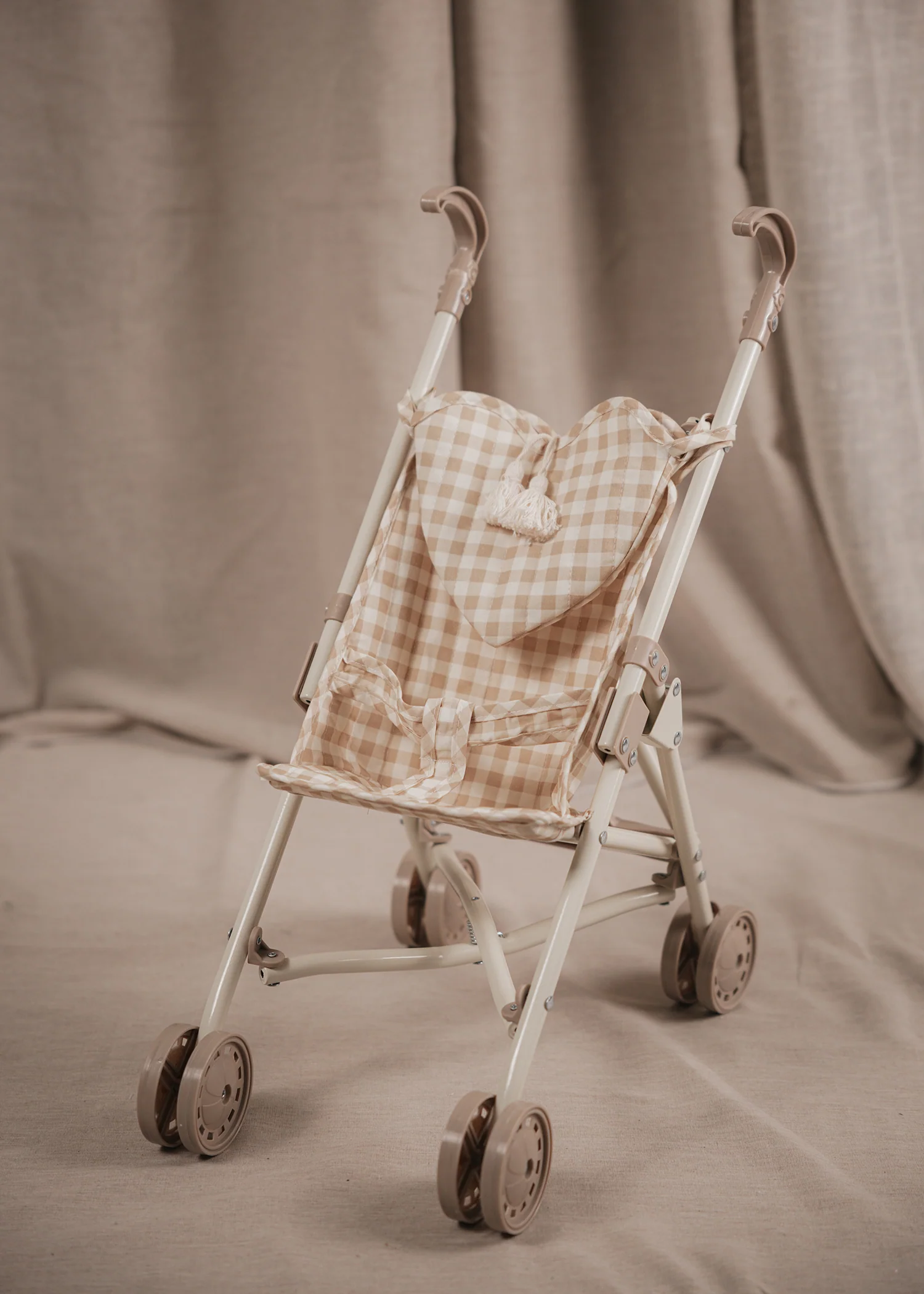 Mrs Ertha kolica za lutke spoj su nježnog retro dizajna i praktičnosti, izrađena od organskog pamuka i metalne konstrukcije za čvrstoću i stabilnost. Namijenjena su lutkama do 36 cm dužine, savršena za sve male mamice i tate koje vole šetati svoje omiljene igračke.