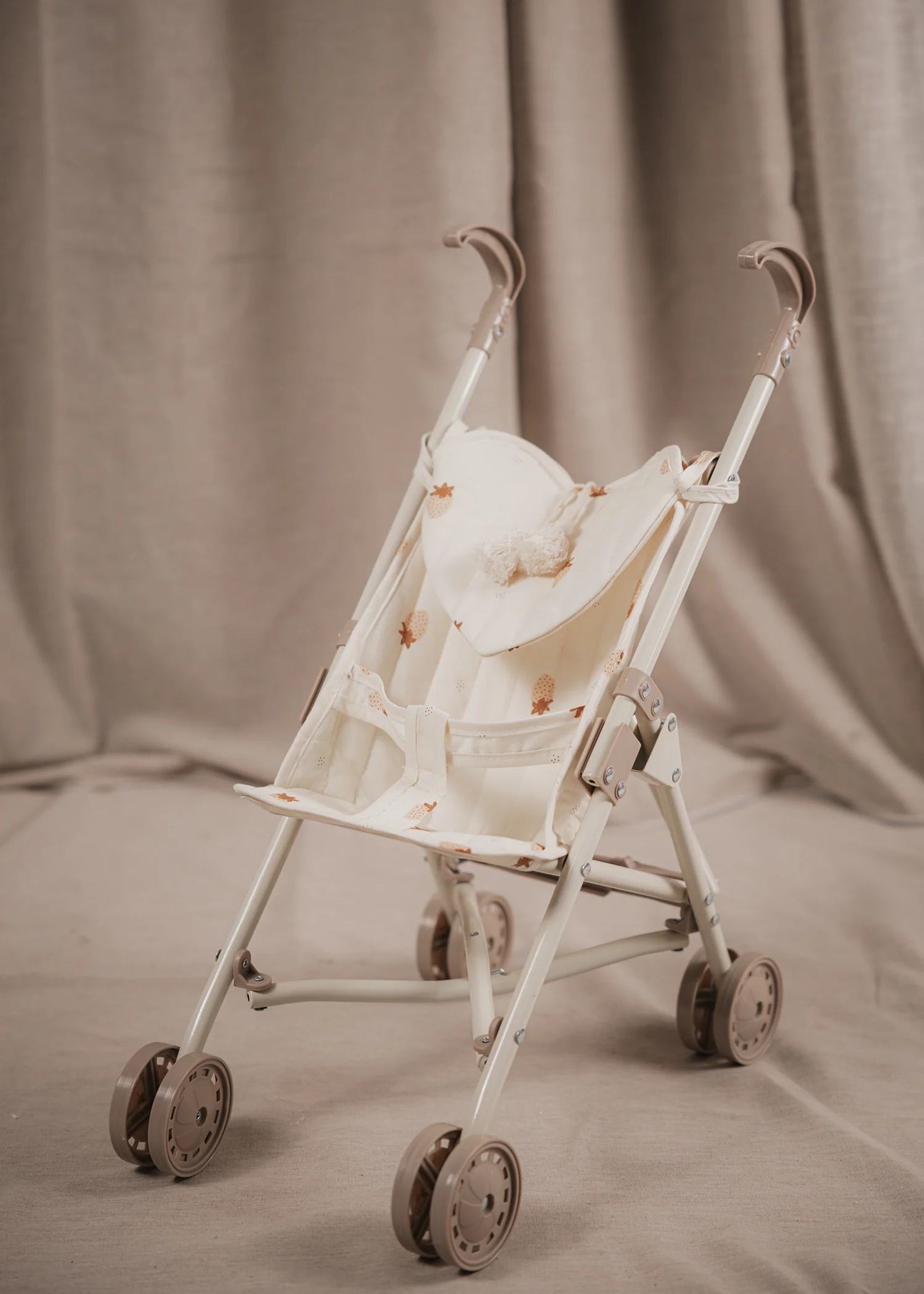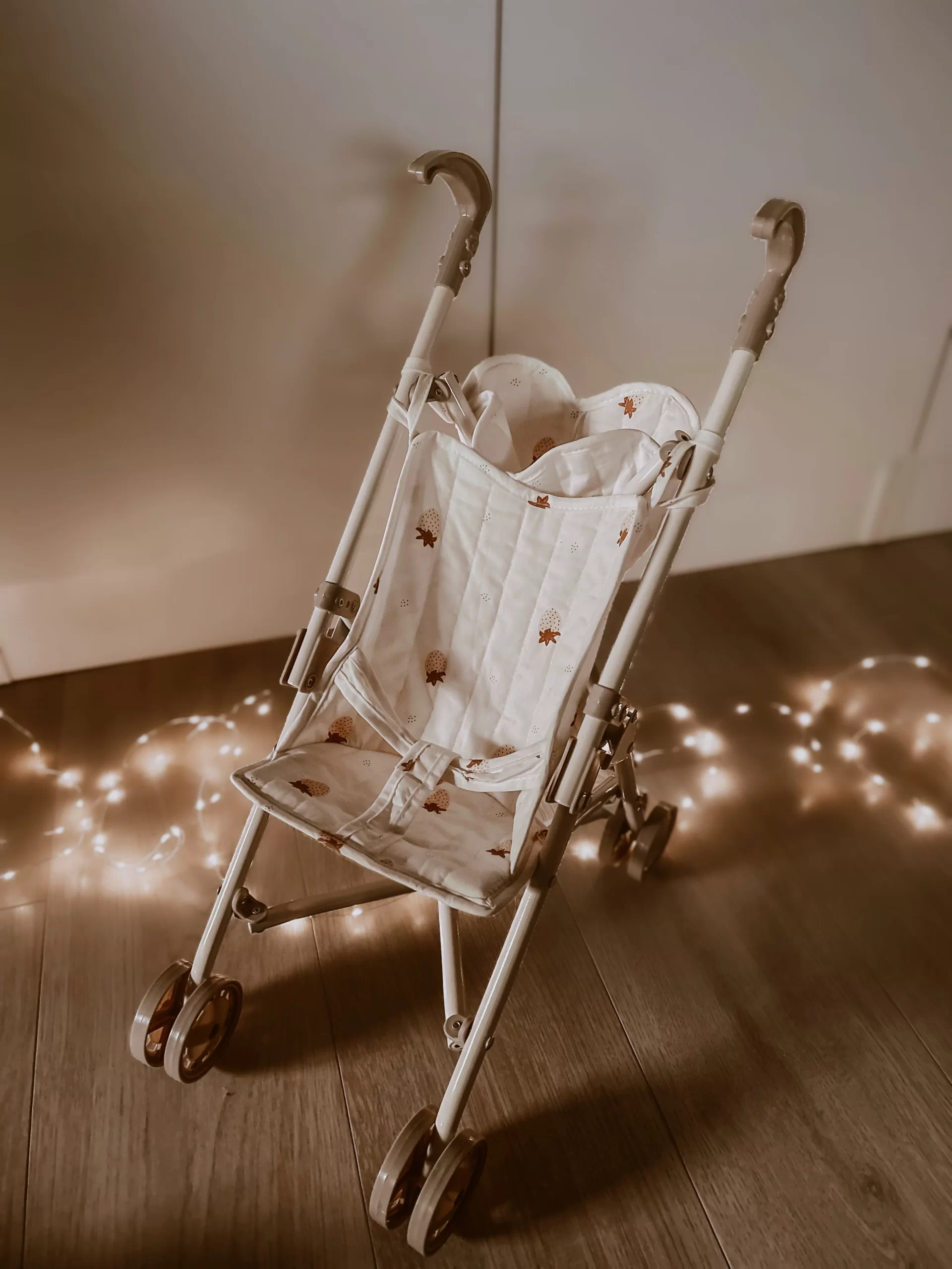 Mrs Ertha kolica za lutke spoj su nježnog retro dizajna i praktičnosti, izrađena od organskog pamuka i metalne konstrukcije za čvrstoću i stabilnost. Namijenjena su lutkama do 36 cm dužine, savršena za sve male mamice i tate koje vole šetati svoje omiljene igračke.