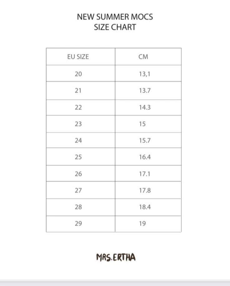 Mrs Ertha ljetne mokasine kombiniraju stil, udobnost i funkcionalnost, pružajući vašem djetetu sigurnost i slobodu kretanja tokom cijelog ljeta.