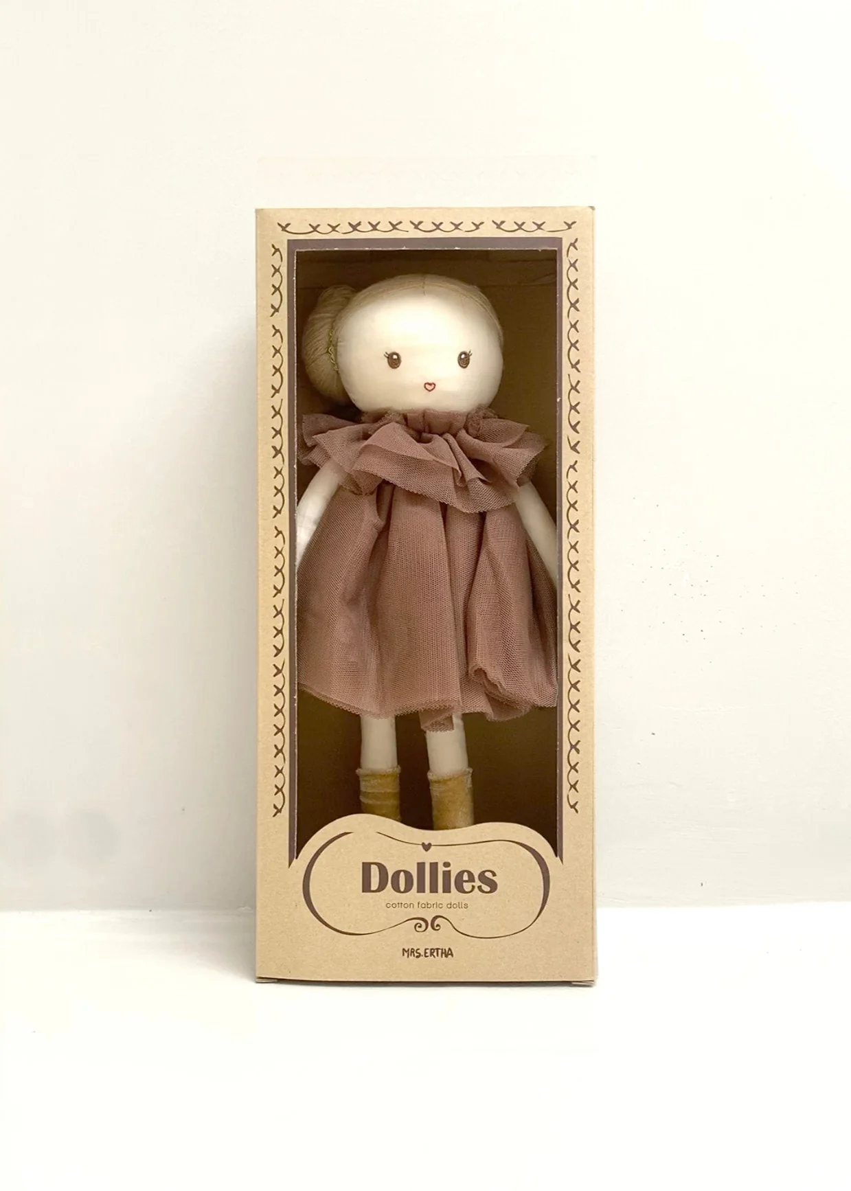 Maggie Lu iz Mrs Ertha kolekcije je mekana lutka visine 35 cm, ručno izrađena od 100% pamuka. Njena tulle haljina, čarapice i donje rublje mogu se skidati, pružajući djeci dodatnu interakciju, kreativnu igru i razvoj finih motoričkih vještina.