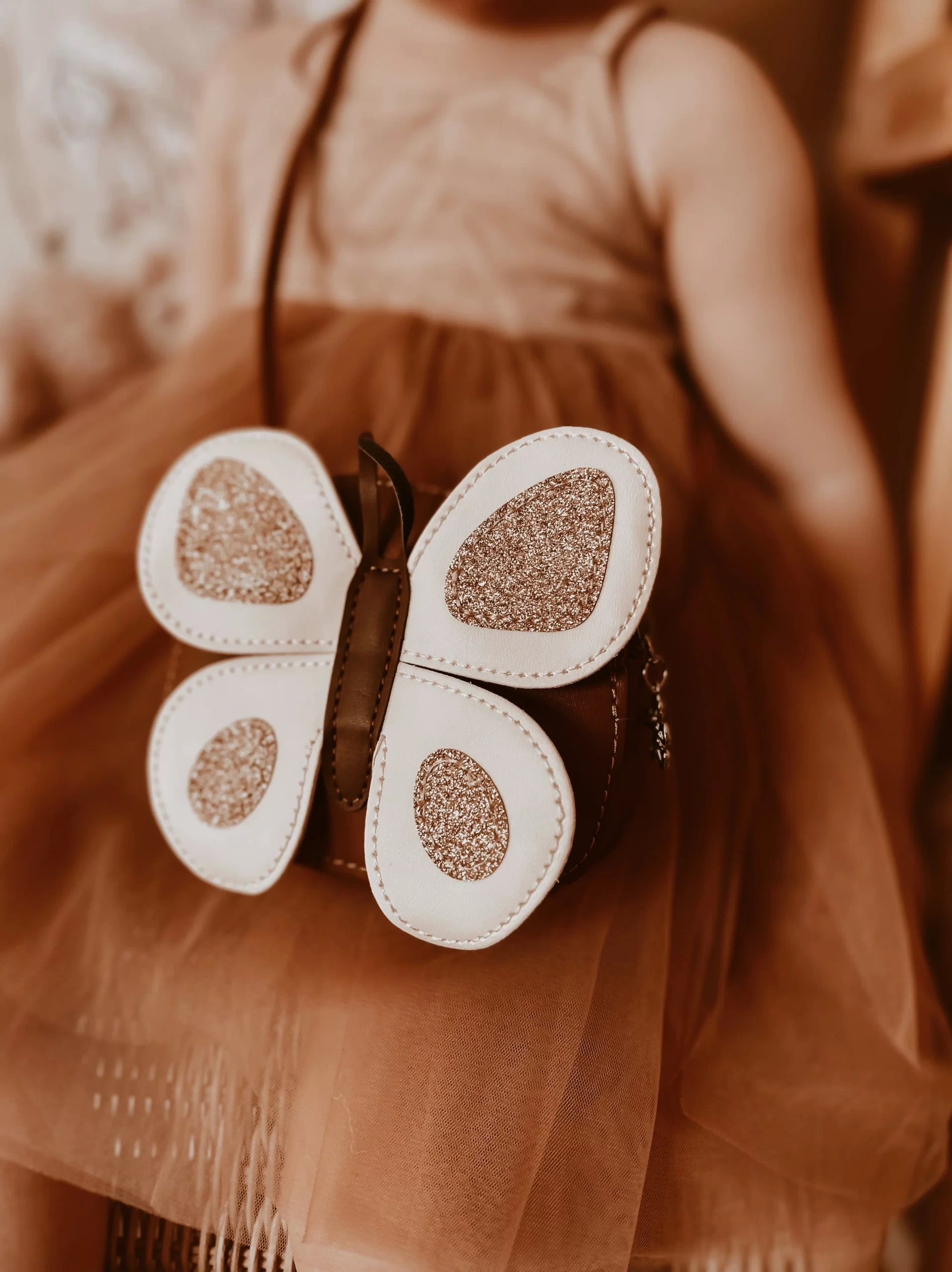 Elegantna, razigrana i funkcionalna, torbica je dizajnirana tako da stane savršeno uz svaku kombinaciju – bilo da je riječ o svakodnevnoj odjeći ili svečanijim trenucima. Sjajni leptir krila dodaju poseban šarm koji djeca obožavaju.