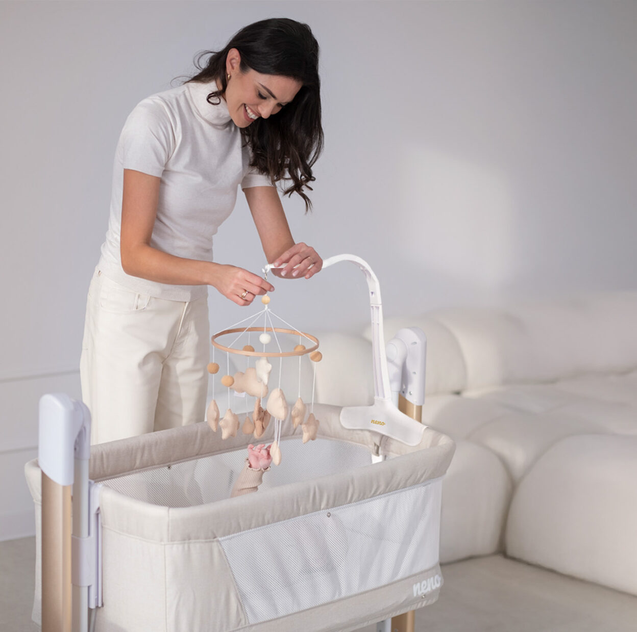 Vrteška Neno Eli nježno stimuliše osjetila bebe. Maskote koje se lagano okreću pomažu razvoju koordinacije ruka–oko i pažnje, dok vizuelni kontrasti i pokret potiču radoznalost i koncentraciju.