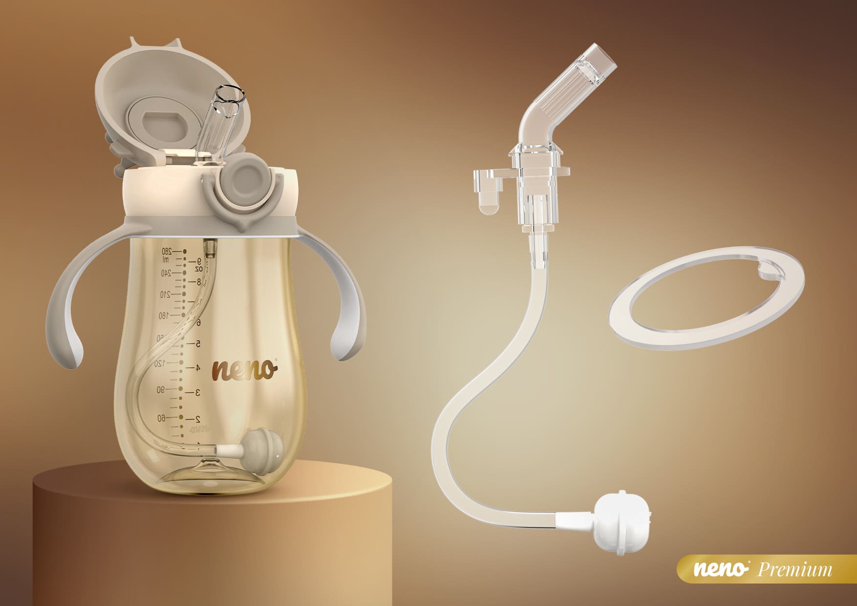 Neno Mio2 Bočica sa slamkom i ručkama 280ml – Brown