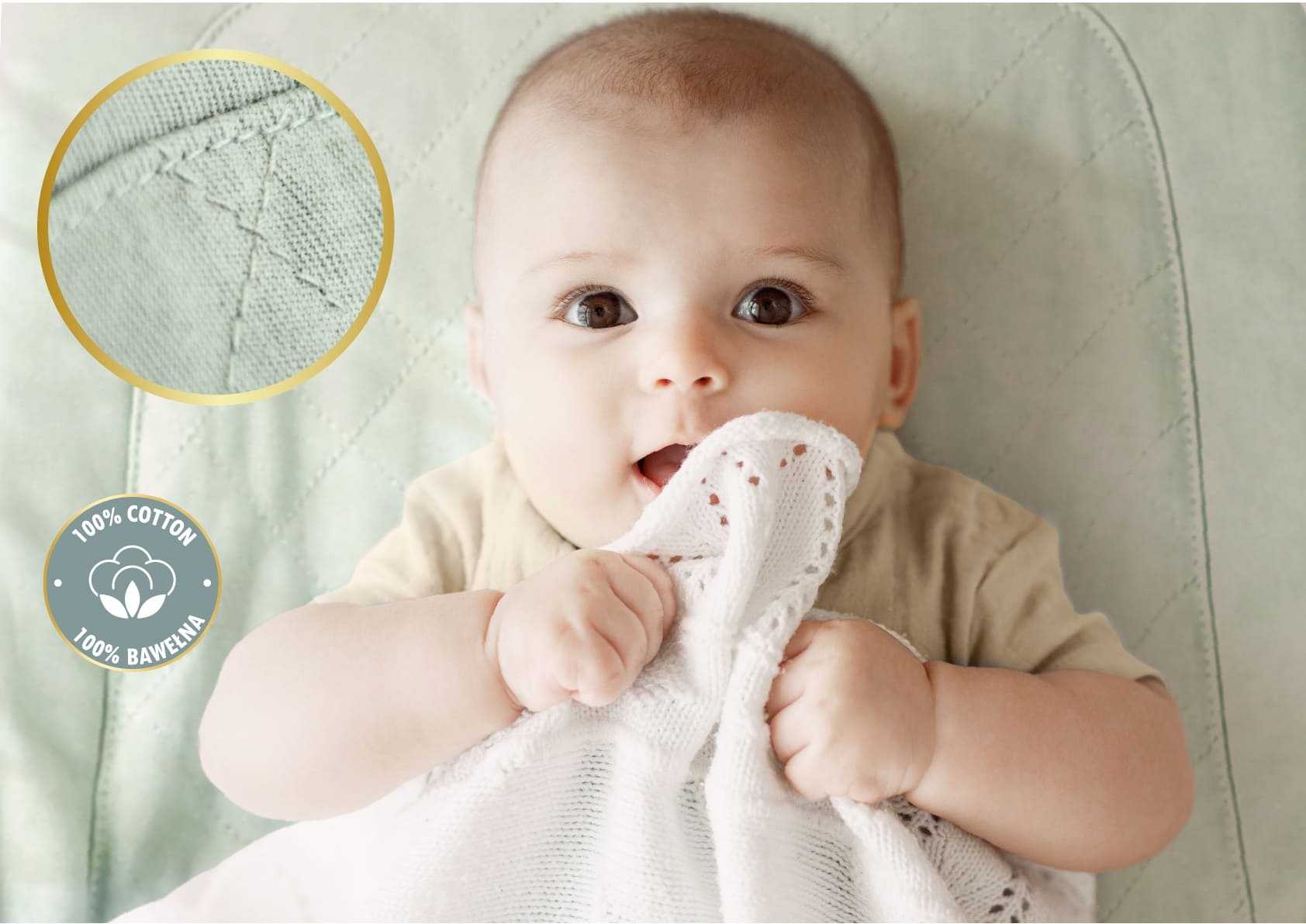 - ● Navlaka od 100% pamuka, podstava od poliestera – meko i nježno za kožu