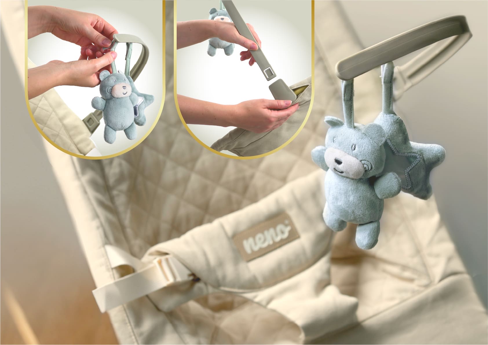Neno Nesso je osmišljen da kombinuje udobnost i funkcionalnost: prirodno njihanje umiruje bebu, dok 3 položaja naslona omogućavaju prilagođavanje različitim aktivnostima tokom dana. Zahvaljujući pamuku na dodirnim površinama i jednostavnom održavanju, ležaljka je pogodna za svakodnevnu upotrebu.