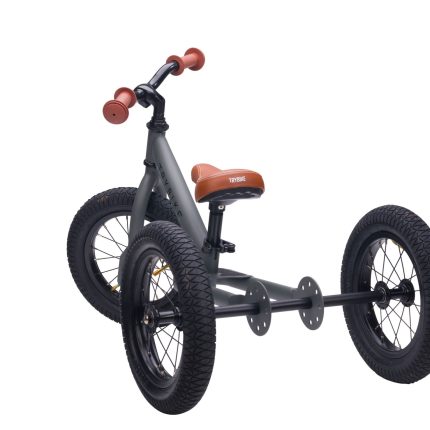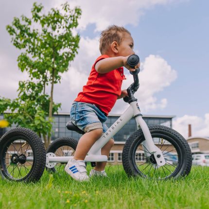 Trybike Steel Grey je prvi 2-u-1 balans bicikl koji dodavanjem još jednog seta točkova postaje tricikl, tako da ga mališani mogu koristiti već od uzrasta od 15 mjeseci pa sve do 2.5 godine, dok je upotreba balans bicikla namjenjena uzrastu od 2.5 godine do 6 godina.