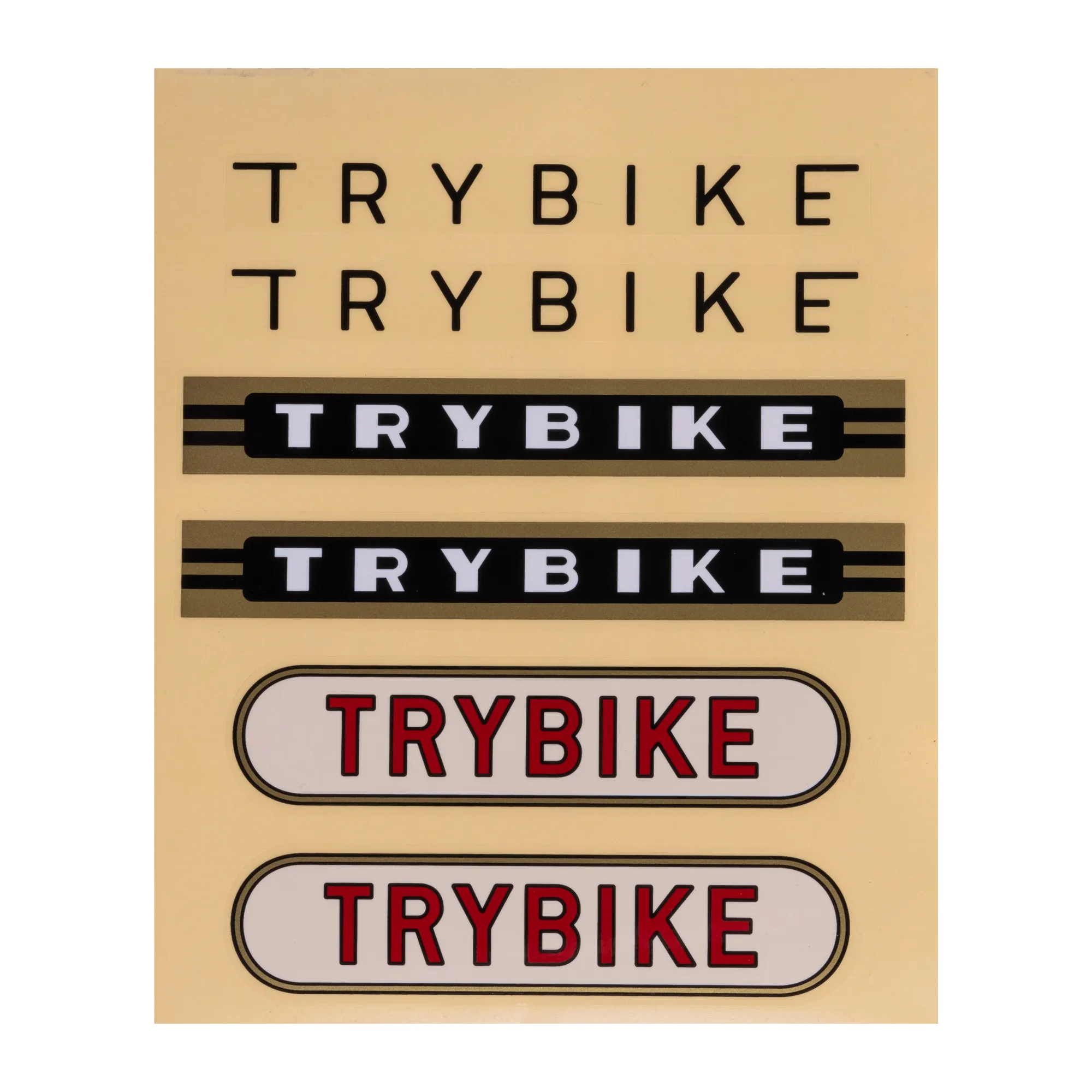 Svaki bicikl dolazi s naljepnicama različitog dizajna koje možete izabrati kako biste Trybike Steel prilagodili svom ukusu. Naljepnice su izrađene od izdržljivog vinila s UV laminatom, pa svaka naljepnica podnosi kišu, vjetar i sunčevu svjetlost. - Najbolja moguća postavka