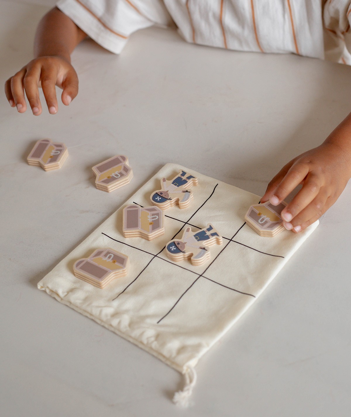 Ova drvena igra “Iks-Oks” s piratima nudi uzbudljivo mentalno nadmetanje.