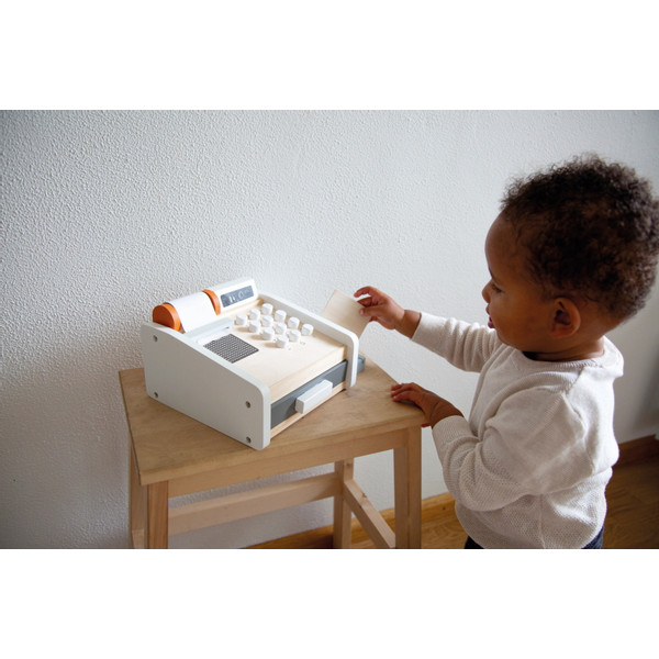 Igranje trgovine je super zabavno, ali naravno, kupci moraju platiti! Ova drvena igračka, Tryco Drvena kasa i aparat za bankovne kartice blagajnom će lako riješiti prodaju i naplatu.