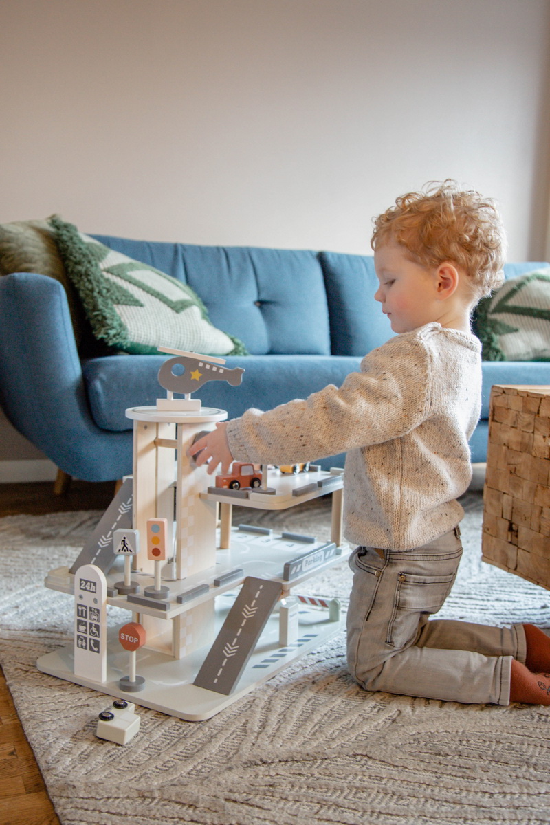 S njom potičete maštu i motoričke sposobnosti vašeg mališana, omogućujući mu da stvara vlastite avanture u svijetu automobila. Garaža je bogato opremljena: sadrži 4 detaljno izrađena automobila, helikopter spreman za akciju na nebu, 4 saobraćajna znaka koji će upoznati mališana s osnovama pravila prometa, praktičnu rampu, autopraonicu za održavanje čistoće vozila, modernu stanicu za punjenje te svestranu dizalicu.