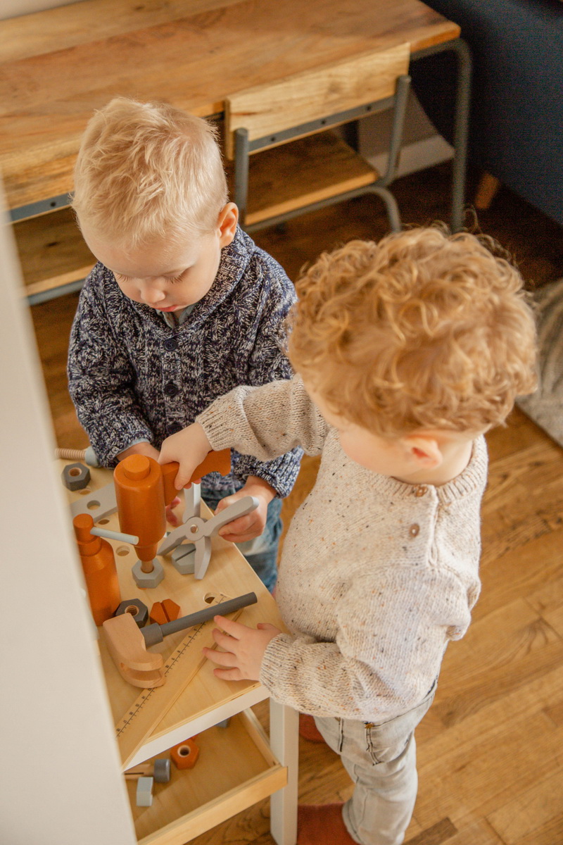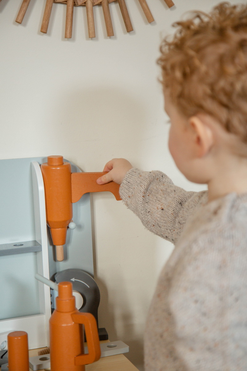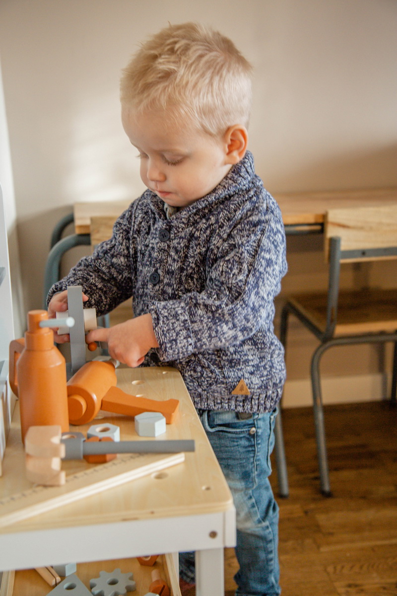 Tryco drvena radionica sa alatom je pravi mali radni stol za kojim dijete stimulira svoju maštu i motoriku.