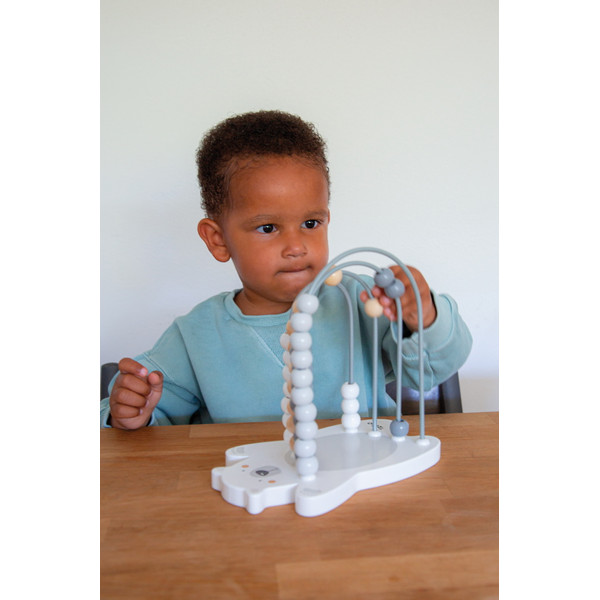 Ovaj abakus ima 4 luka, svaka s 10 perlica u različitim bojama i oblikom medvjeda. Prikladan je za djecu od 18 mjeseci nadalje.