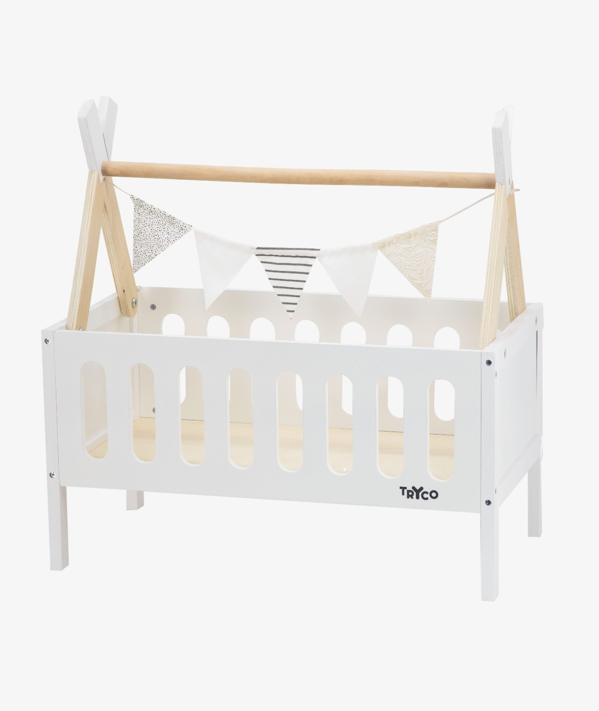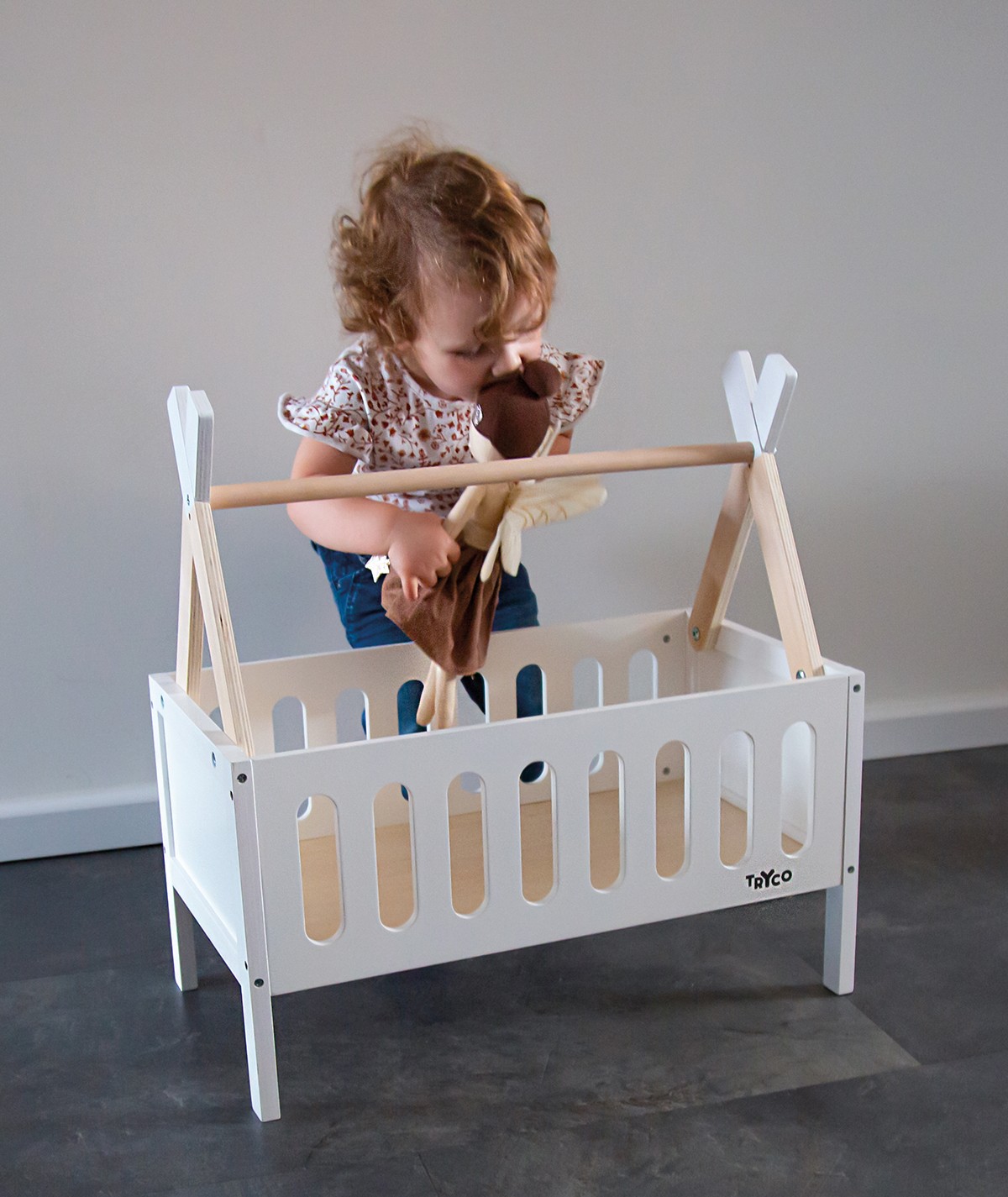 Tryco Drveni krevetić za lutke Tipi je moderan krevet za lutke, nježnog izgleda koji odlično izgleda u dječijoj sobi ili igraonici namjenen za lutke veličine do 48 cm.