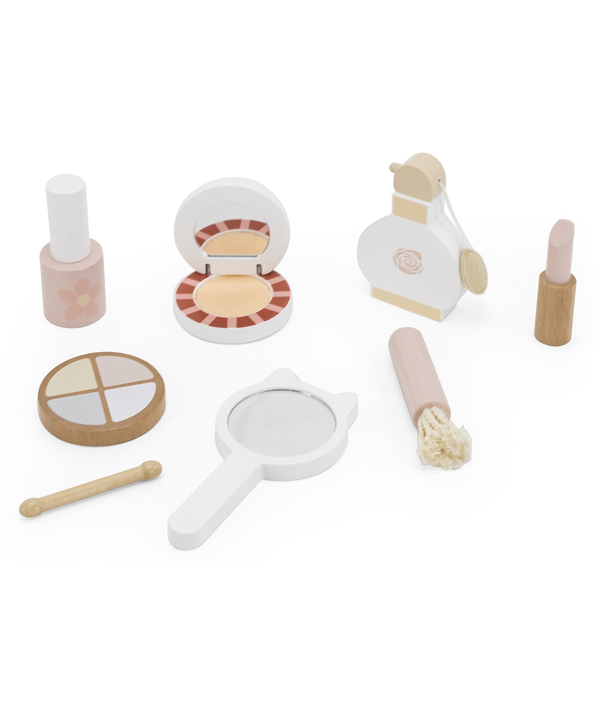 Jeste li gotovi? Onda vaše dijete može provjeriti kako sve izgleda u ogledalu. Mašta djeteta će se razmahati s ovim drvenim setom za šminkanje! Praktična kutija olakšava nošenje seta svuda sa sobom.